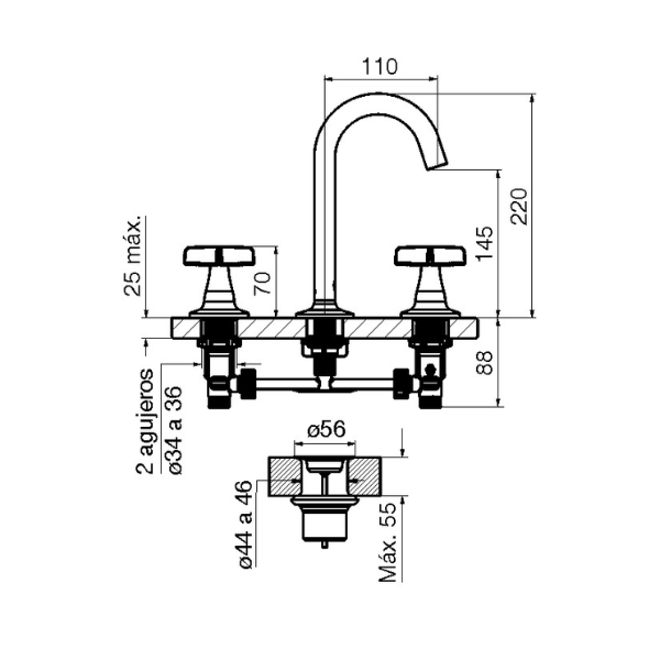 | Caudal | Caudal mínimo de salida a presión estática requerida 0,4 BAR y caudal mínimo de alimentación de 20 lts por minuto (en conexiones fría y caliente): 10 lts por minuto. |
