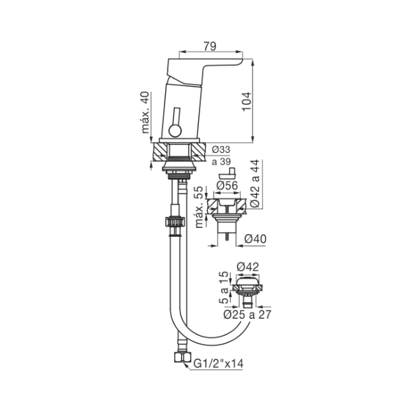 | Caudal | Caudal mínimo de salida a presión de 0.4 BAR y caudal mínimo de alimentación de 20 lts por minuto: Por aro 5.8 lts por minuto / Por lluvia 4,1 lts por minuto. |