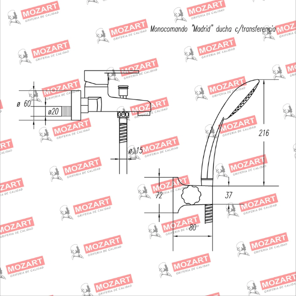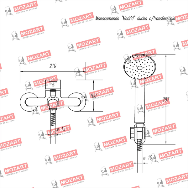 MOZART 2020 MADRID MONOCOMANDO DUCHA C/TRASNFERENCIA CROMO