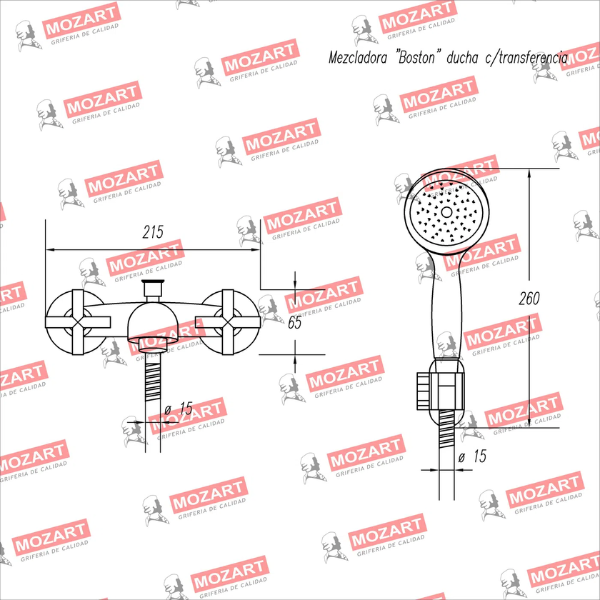 MOZART 2080 BOSTON MEZCLADORA DUCHA C/TRASNFERENCIA CROMO
