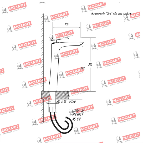 MOZART 7086 LIMA MONOCOMANDO LAVATORIO ALTA NEGRA