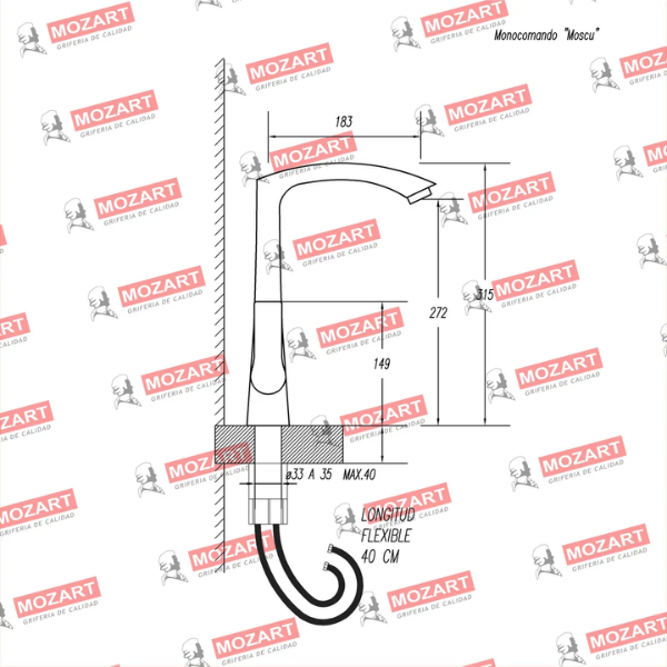 MOZART 7118 MOSCU MONOCOMANDO MESADA PICO «L» CROMO