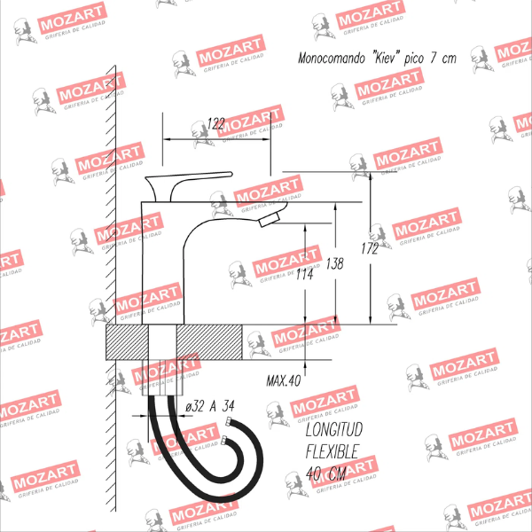 MOZART 7180 KIEV MONOCOMANDO LAVATORIO MEDIANO ACERO