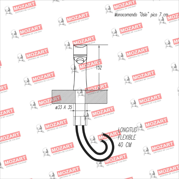 MOZART 7196 OSLO MONOCOMANDO LAVATORIO MEDIANO NEGRA