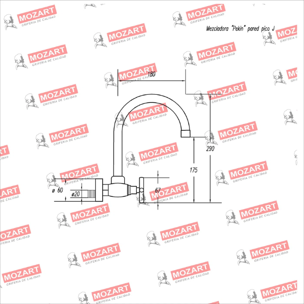 MOZART 7274 PEKIN MEZCLADORA PARED ABS NEGRA «PICO J» CROMO