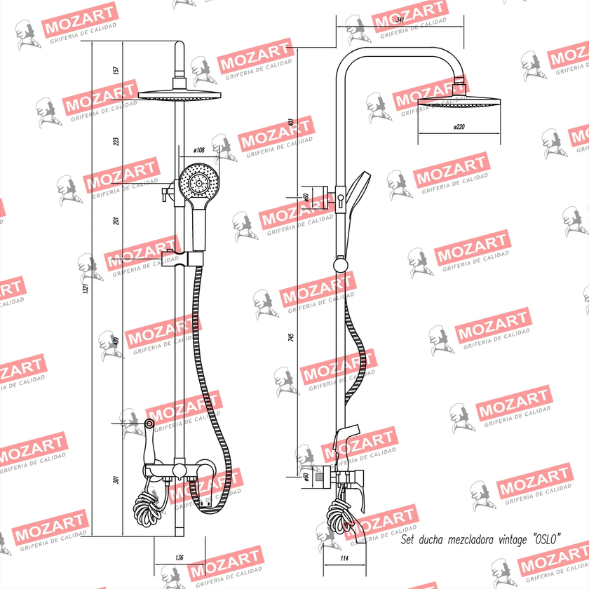 MOZART 7952 SOLO SET DUCHA VINTAGE MEZCLADORA CROMO