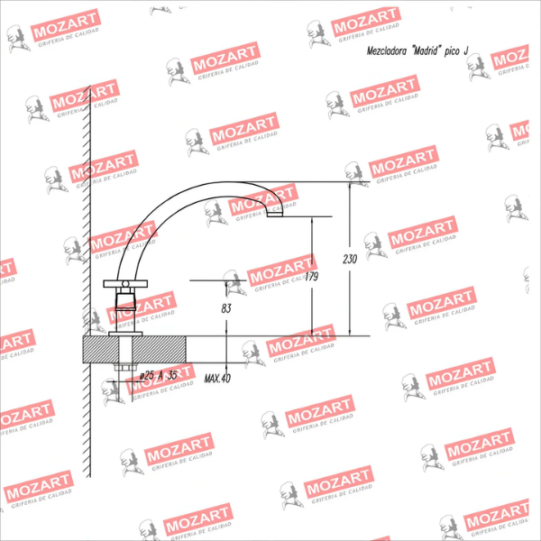 MOZART 8577 MADRID MEZCLADORA MESADA PICO CISNE C/C CROMO
