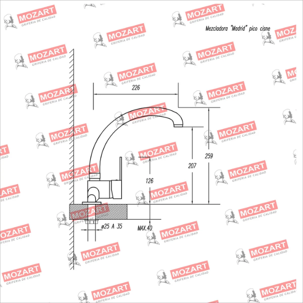 MOZART 9025 MADRID MEZCL MONOCOMANDO MESADA PICO CISNE CROMO