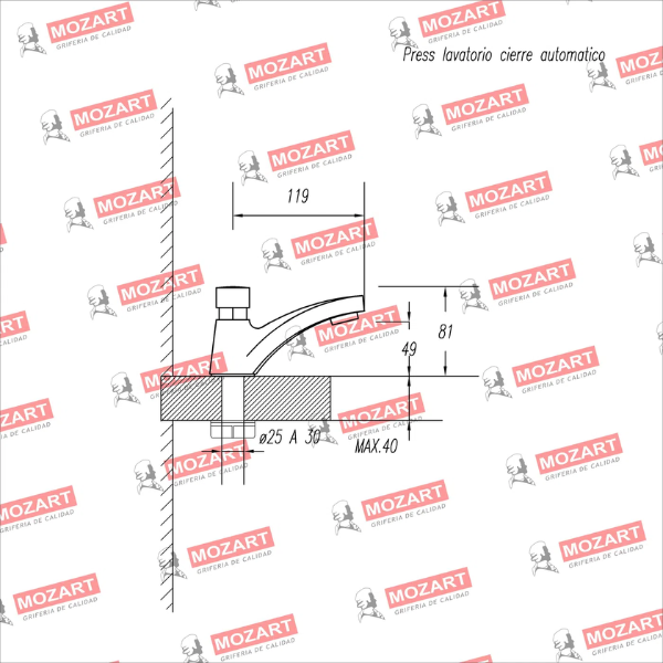 MOZART 9036 PRESS LAVATORIO CIERRE AUTOMATICO ACERO