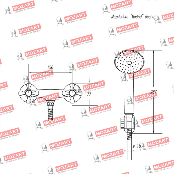 MOZART 9315 MEZCLADORA DUCHA S/TRANSF CON DUCHADOR