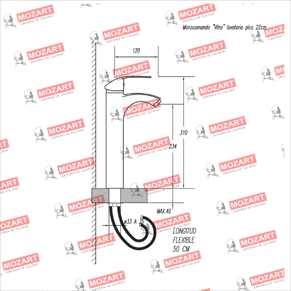 MOZART 9411 VITRA MONOCOMANDO LAVATORIO ALTA CROMO