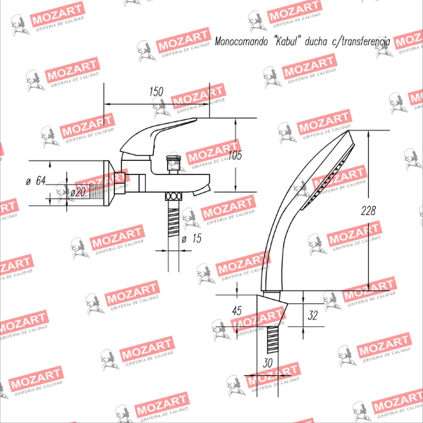 MOZART 9434 KABUL MONOCOMANDO DUCHA C/TRANSF CROMO