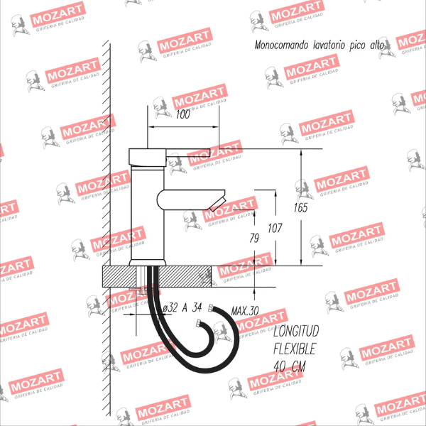 MOZART 9538 LAVATORIO DAKAR MONOCOMANDO BAJO