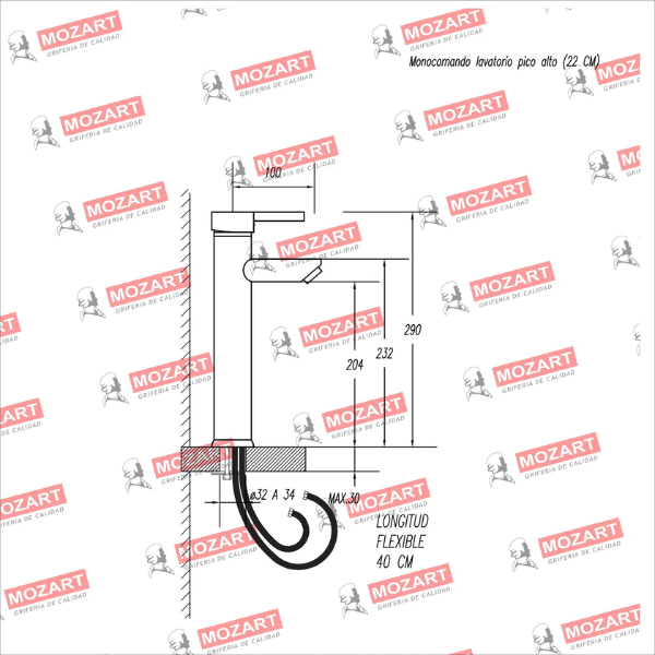 MOZART 9539 LAVATORIO DAKAR MONOCOMANDO ALTA