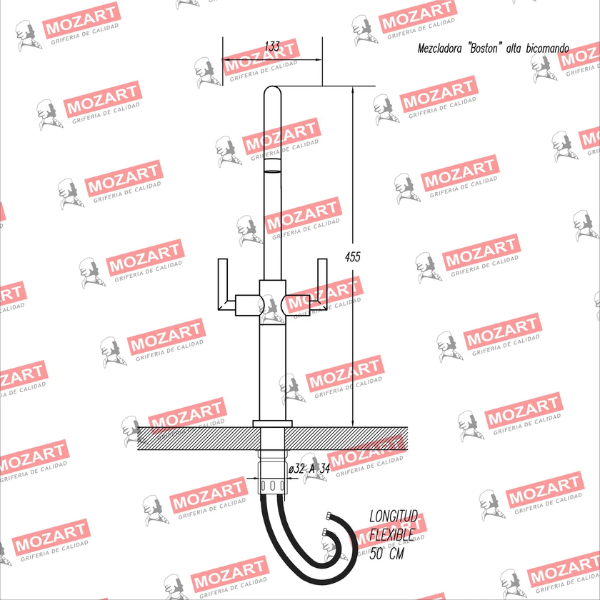 MOZART 9621 BROOKLYN MONOBLOCK MESADA EXTRA ALTA NEGRA