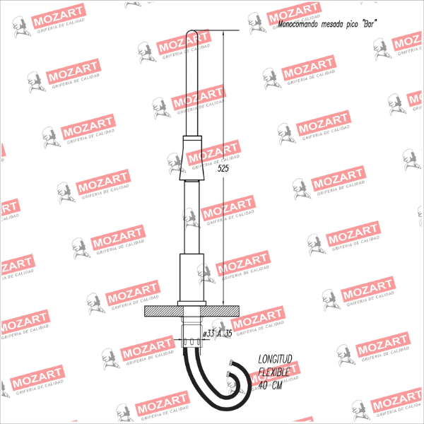 MOZART 9921 DALLAS MONOCOMANDO MESADA C/PICO FLEX CONO ROJO