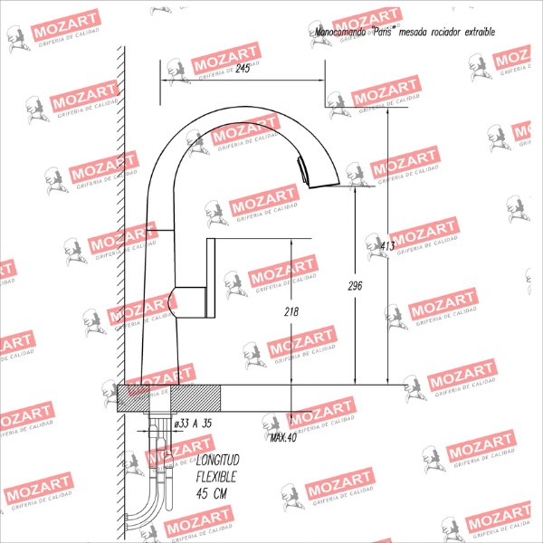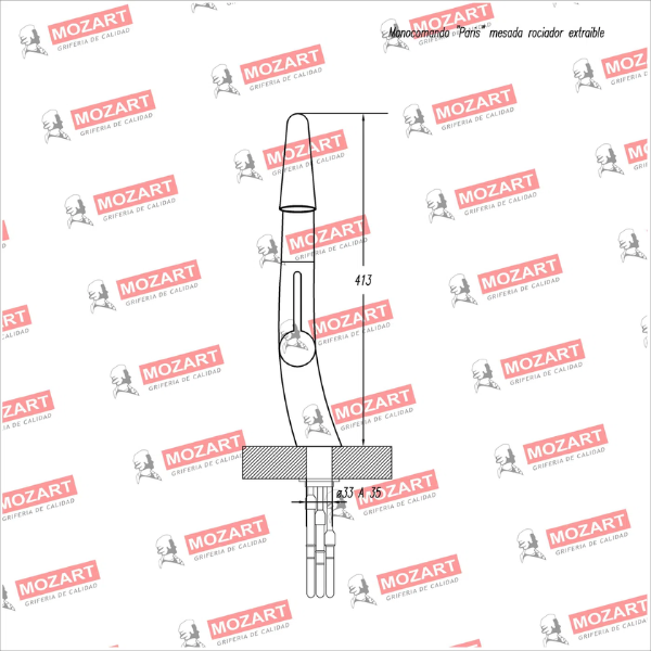 MOZART 9989 PARIS MONOCOMANDO MESADA CROMO C/ROCIADOR