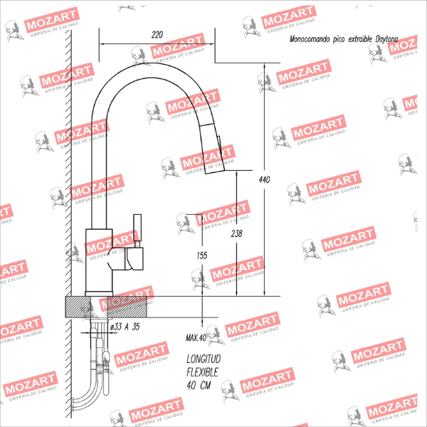 MOZART 9993 DAYTONA MONOCOMANDO MESADA CROMO C/ROCIADOR